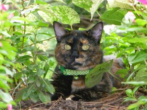 Brilliant 6 words! I love her sitting among the flowers with her pretty green collar.