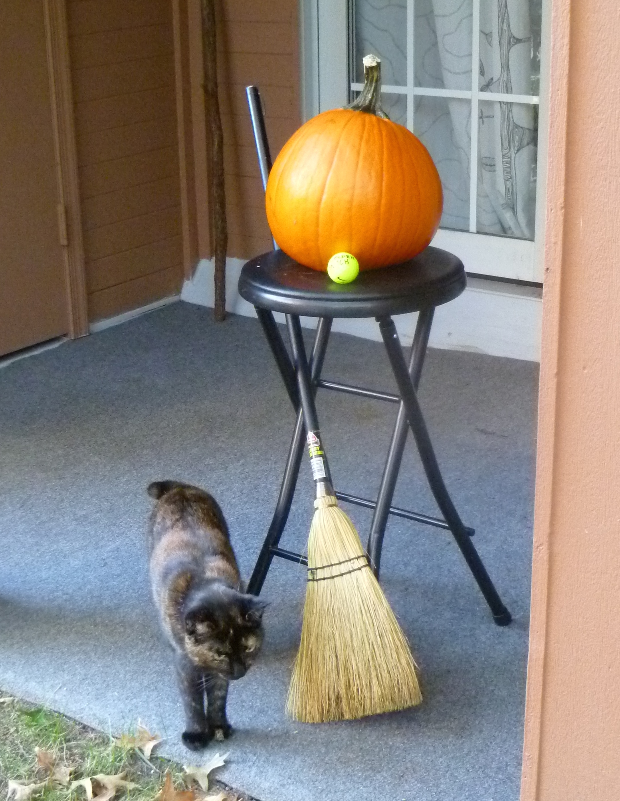 What a welcoming site! Josephine… the black cat, the witches broom, and pumpkin, too! Happy Autumn Maureen!