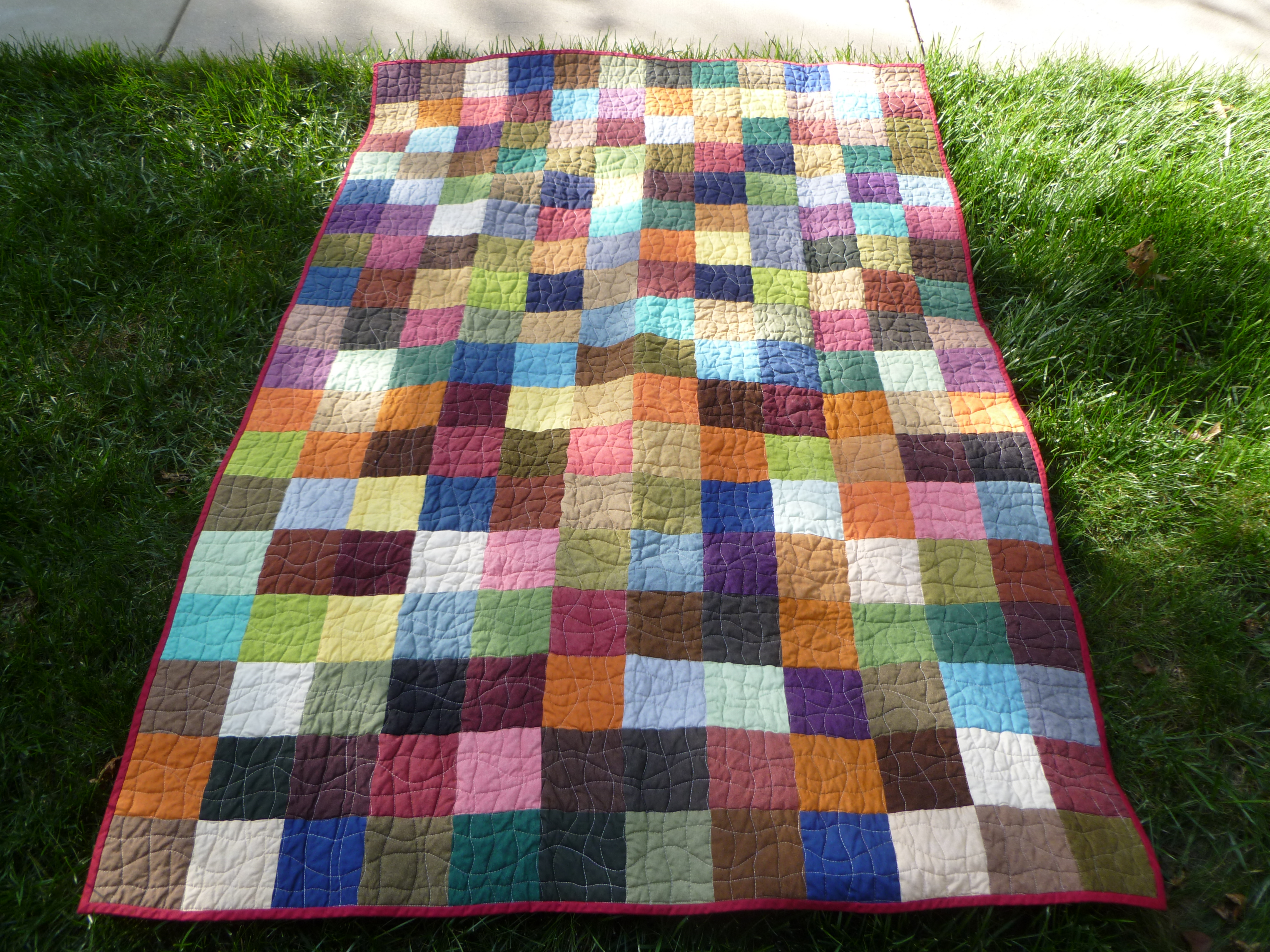 (Actually now that I think about it…) It took me hours upon hours upon…well, you get it…to cut, iron, and sew that puppy together. For example. just basting the top, the middle, and the back layers together with thread took eight hours. And for anyone who knows not quilting, that eight hours worth of basting thread? It’s only temporary. It All Gets Removed once the quilt is permanently quilted together by machine