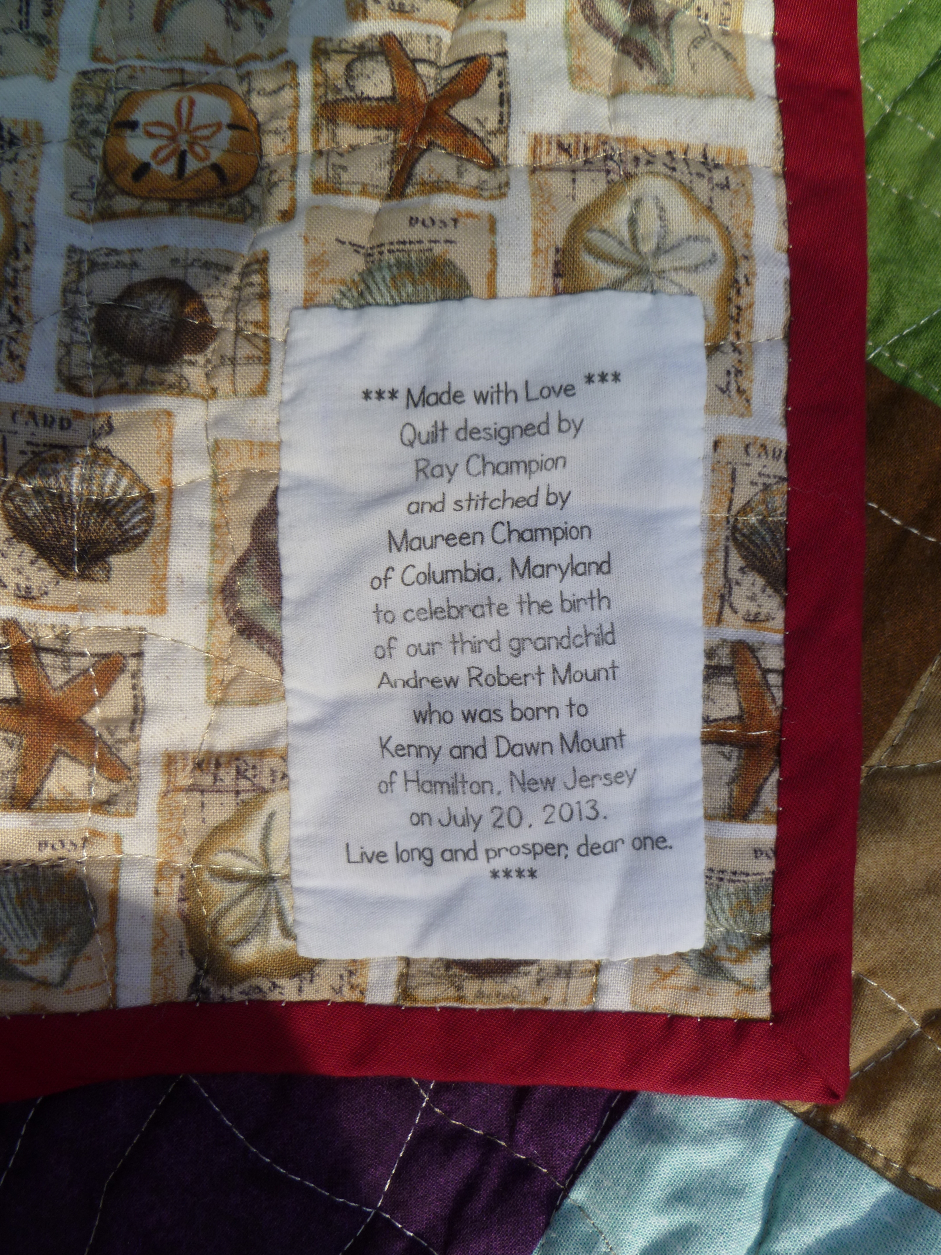 What a wonderful legacy for your grandbaby! The example of teamwork and something cozy to snuggle under. I particularly like the personalized message. 🙂