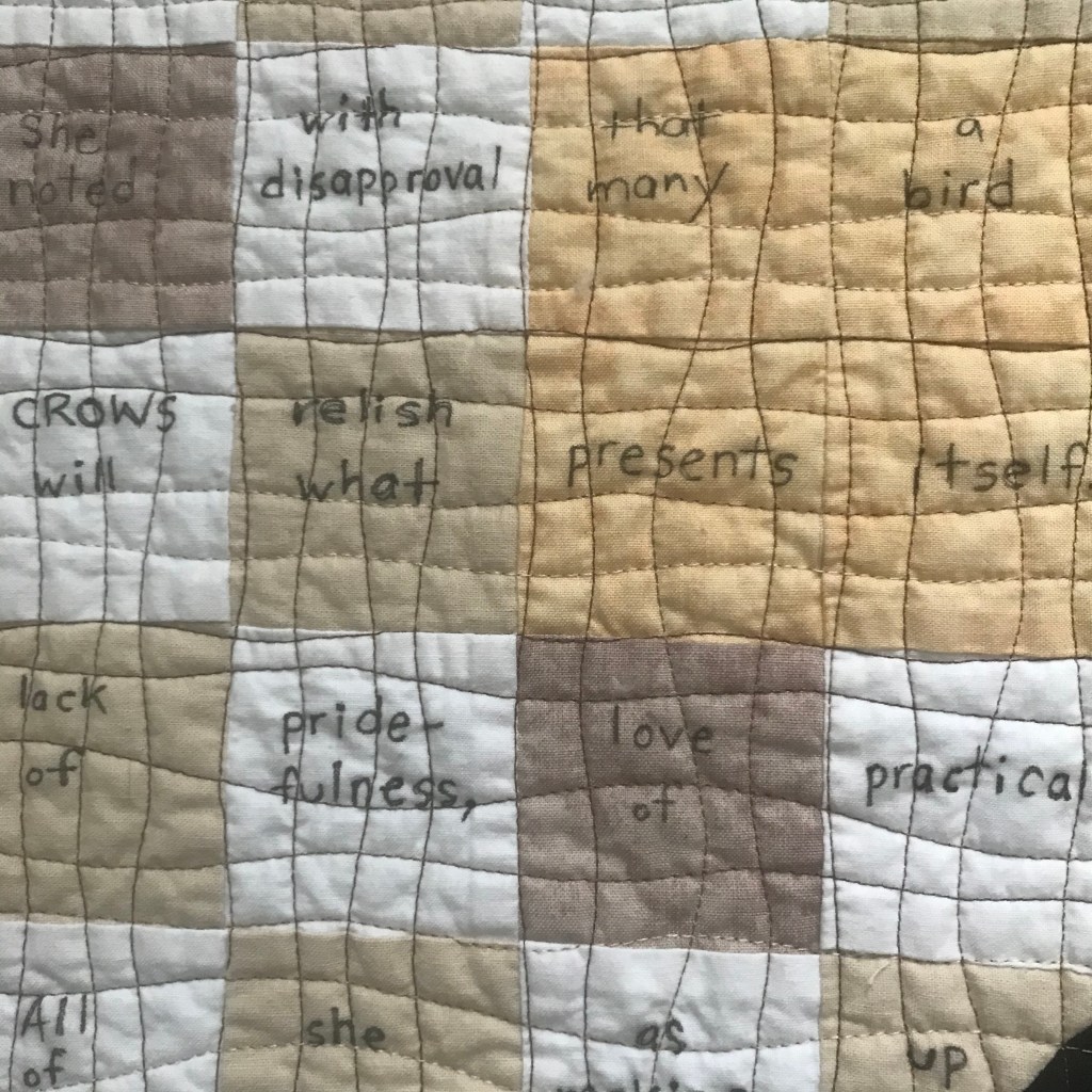 I think that is an amazing quilt! I have never seen anything like it and really love the primitive look of it. The colors, the words, the crow – just perfect really! Well done! You are very talented!